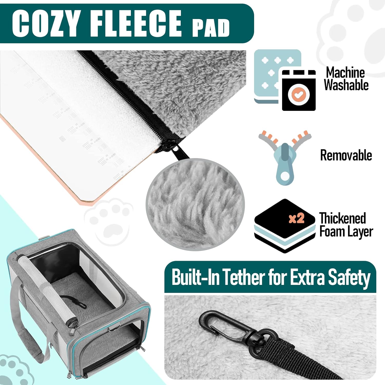 Pet Carrier for Large Cats 20 lbs+ / Soft Sided Small Dog Travel Carriers Top Load/Collapsible Carrier Bag for Big Cat / 2 Kittens Sturdy Transport Carriers Long Trips/Medium Cats 15 pounds