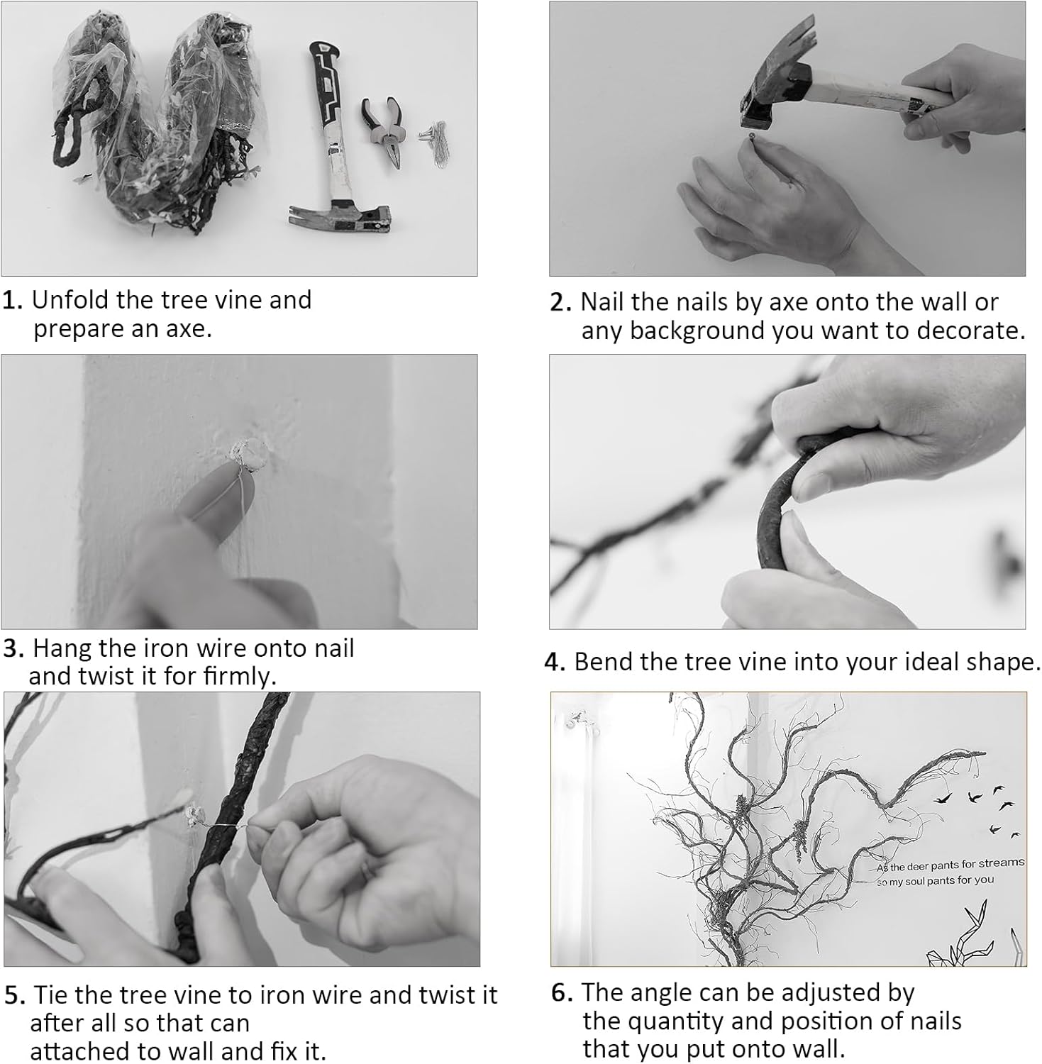 - MATERIAL: Iron wire inside makes the tree vine can be bent arbitrarily. Paper and plastic surface highly simulated the real tree bark and real touch