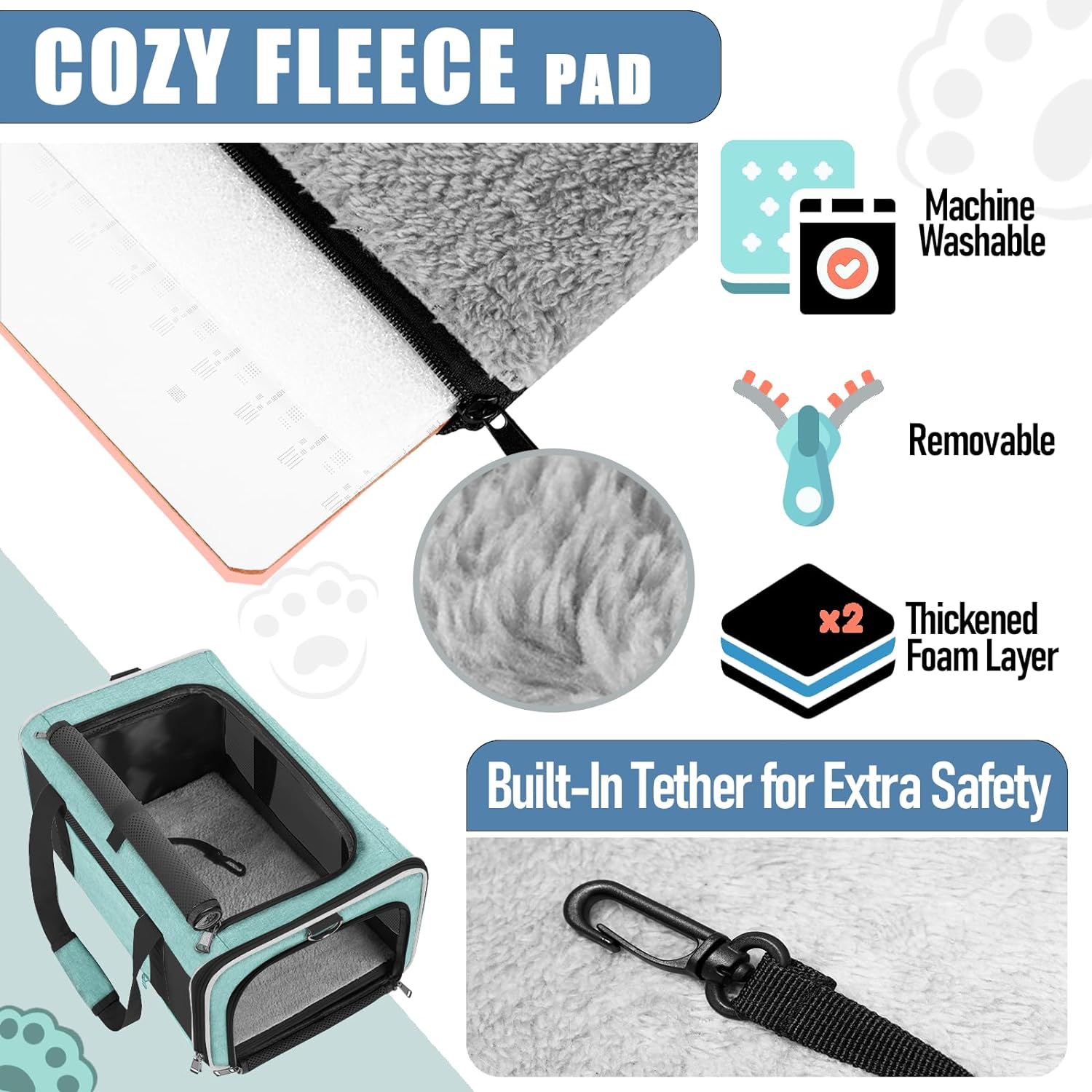 - Secured with auto-locking zippers, your pet can't escape easily by pushing against the zipper from the inside. An inner tether for extra safety. A reflective stripe on the side helps you feel at ease when you walking the dog at night